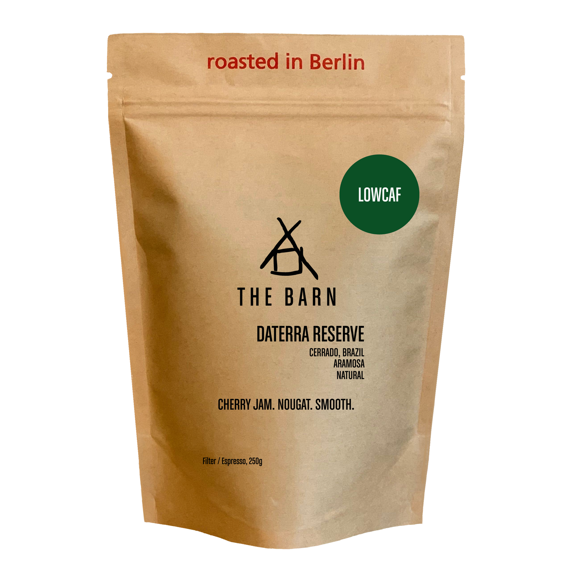 Daterra Reserve Low Caf has tons of sweetness. Notes of cherry jam and nougat are predominant. This coffee is plush with a smooth finish.